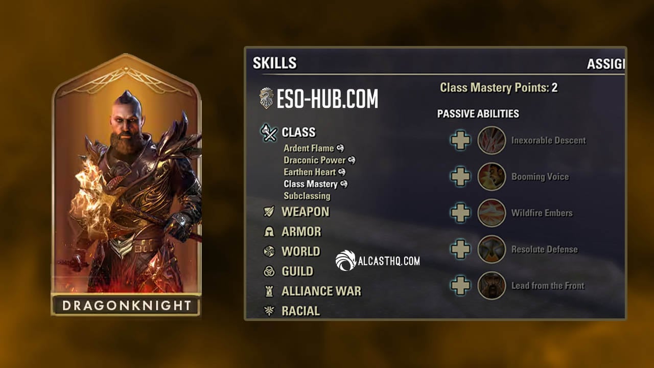 The Dragonknight Class Mastery passives lean heavily into fire damage, blocking and Ultimate synergies. The longer you fight, the stronger you get, building on the Landslide mechanic from the Update 49 class refresh.