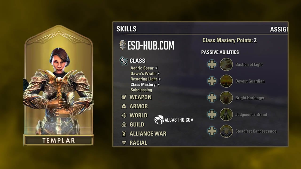 ESO Class Mastery Passives are a new set of passives in Update 50 for pure-class characters in The Elder Scrolls Online. If all three of your native class skill lines are at level 50 and you are not subclassing, you unlock five exclusive passives and can slot two at a time. They cost no skill points.