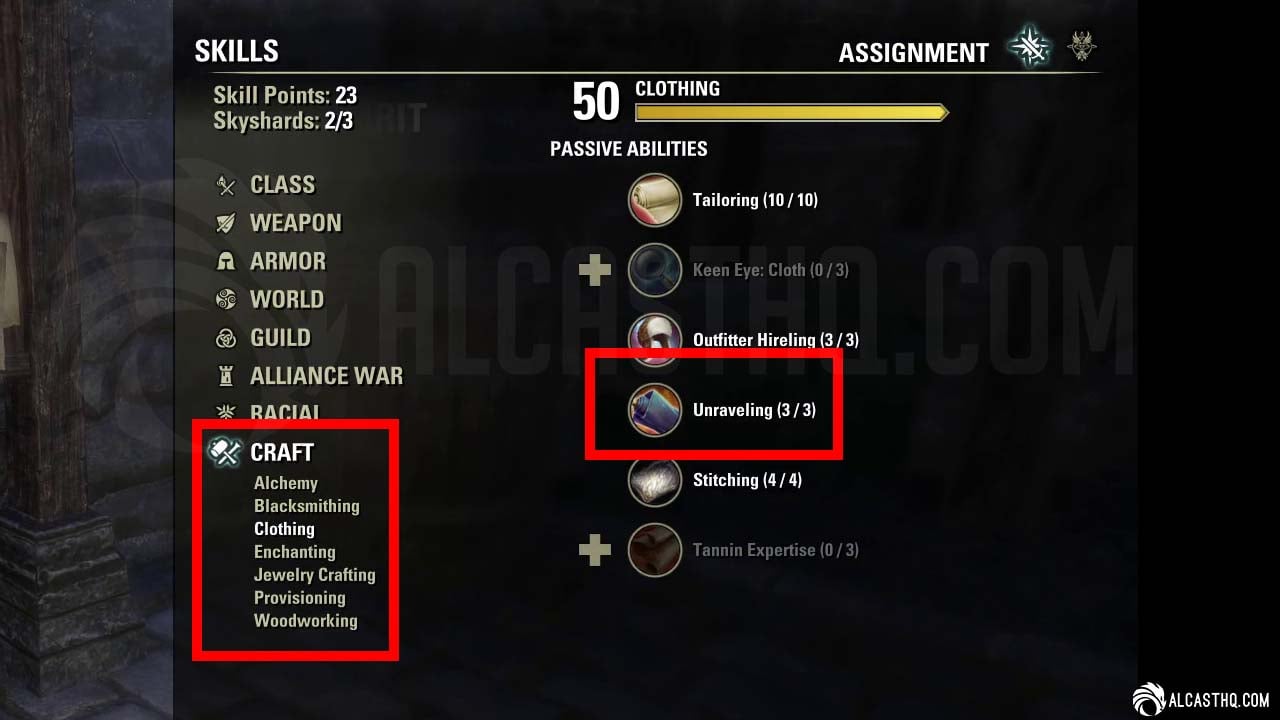 Maxed crafting skills (Level 50) and extraction passives like Unraveling dramatically increase gold material drops from refining. Crafting proficiency directly scales your ESO gold farming efficiency.