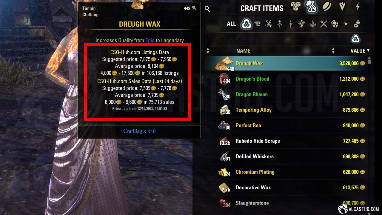 - Anticipate Demand: The meta changes with new patches. By reading PTS (Public Test Server) patch notes, you can anticipate which sets or materials will become high-demand before the patch goes live.