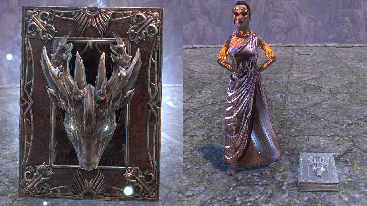 Fable of the Dragon furnishing in ESO is bought from The Scholarium Achievement Furnisher Caal for 4,000 gold after completing the