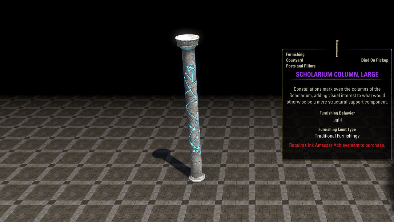 Scholarium Column, Large furnishing in ESO is bought from The Scholarium Achievement Furnisher Caal for 8,000 gold after completing the Ink Amasser achievement.