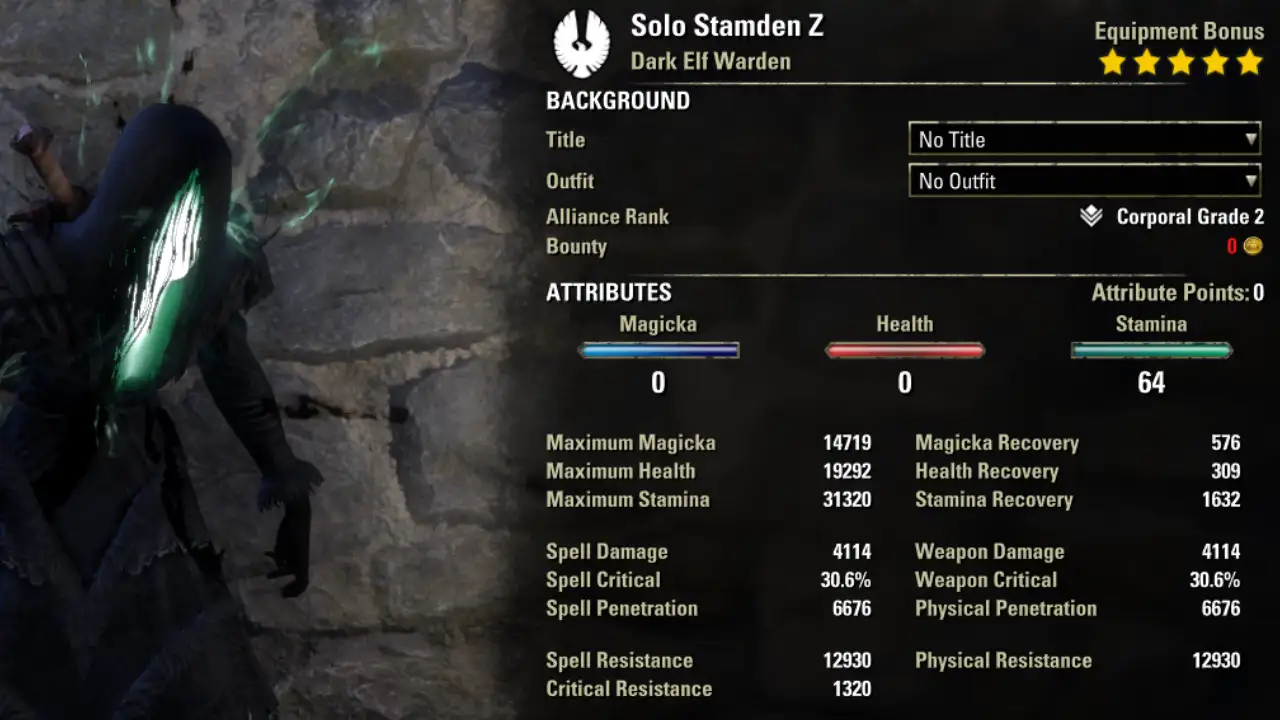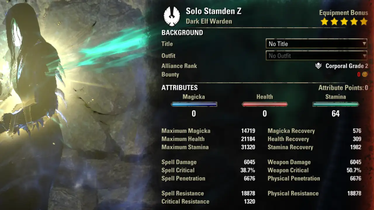 Welcome to the Solo Stamina Warden Build for ESO (Elder Scrolls Online). This build is optimized for solo play. Make sure to bookmark the link as I will keep updating the build for each new Update of ESO. If you are new to the game I would also recommend checking out a few other guides: