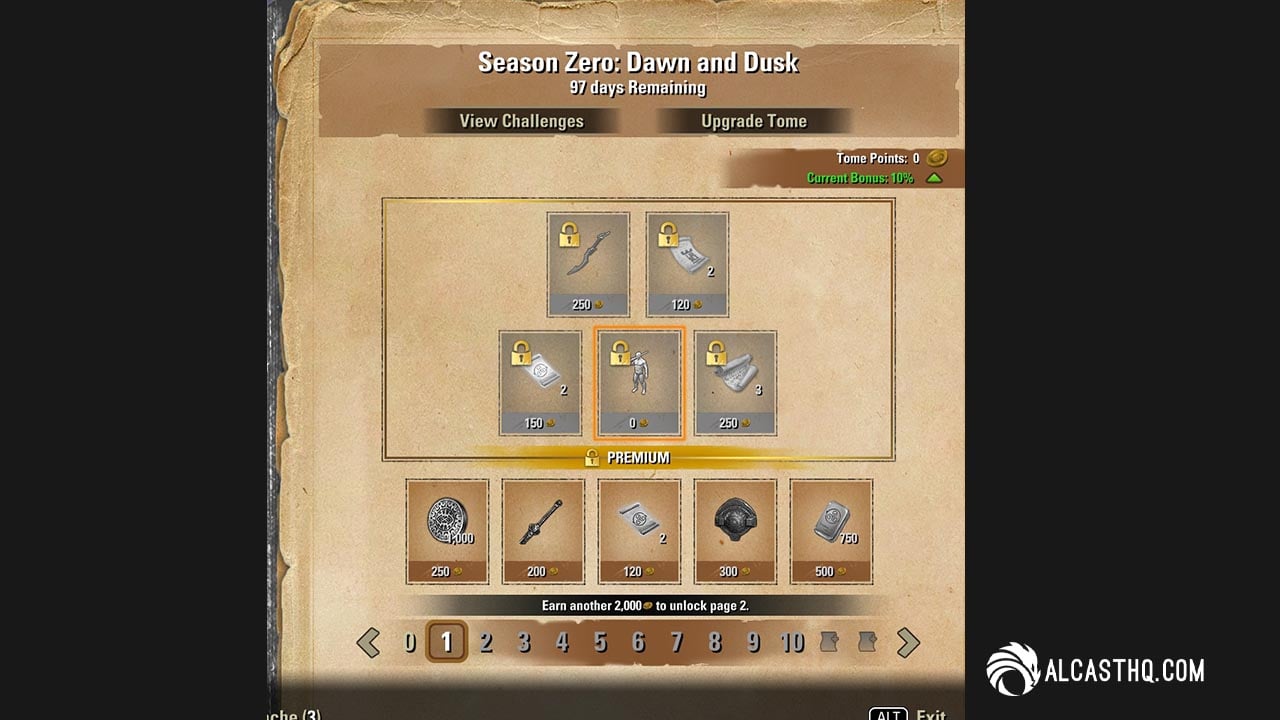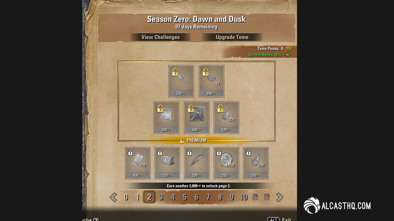 Tamriel Tome of Dawn and Dusk Page 2 includes the following rewards. Requires 2,000 Tome Points earned to unlock.