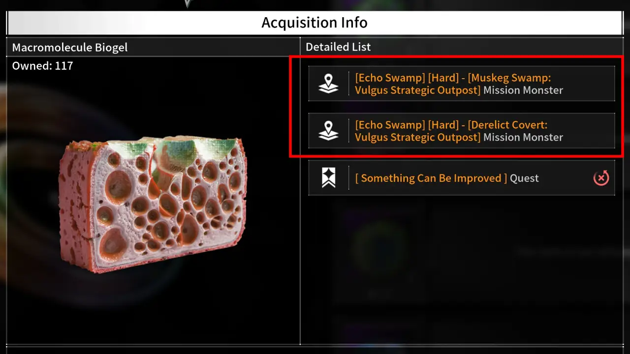 | Macromolecule Biogel | 22 | Fast | Outposts in Echo Swamp Hard |