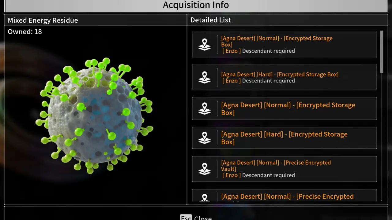 | Mixed Energy Residue | 8 | Fast with Enzo/ Medium without Enzo | Encrypted Vaults in Agna Desert |
