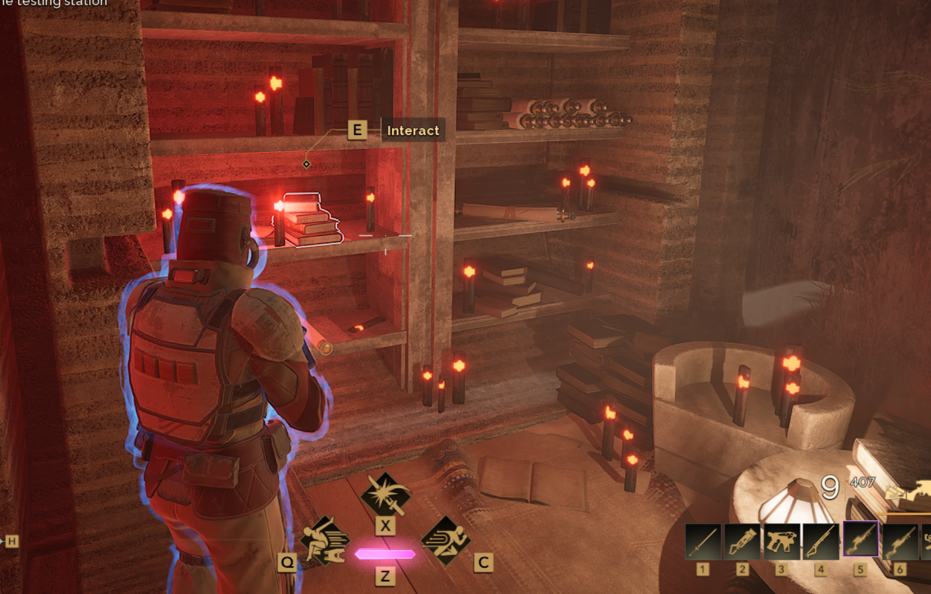 Once you arrive, you will find Derek just inside the doorway and asking you to retrieve a recording of Kyne’s lecture located within the Testing Station.