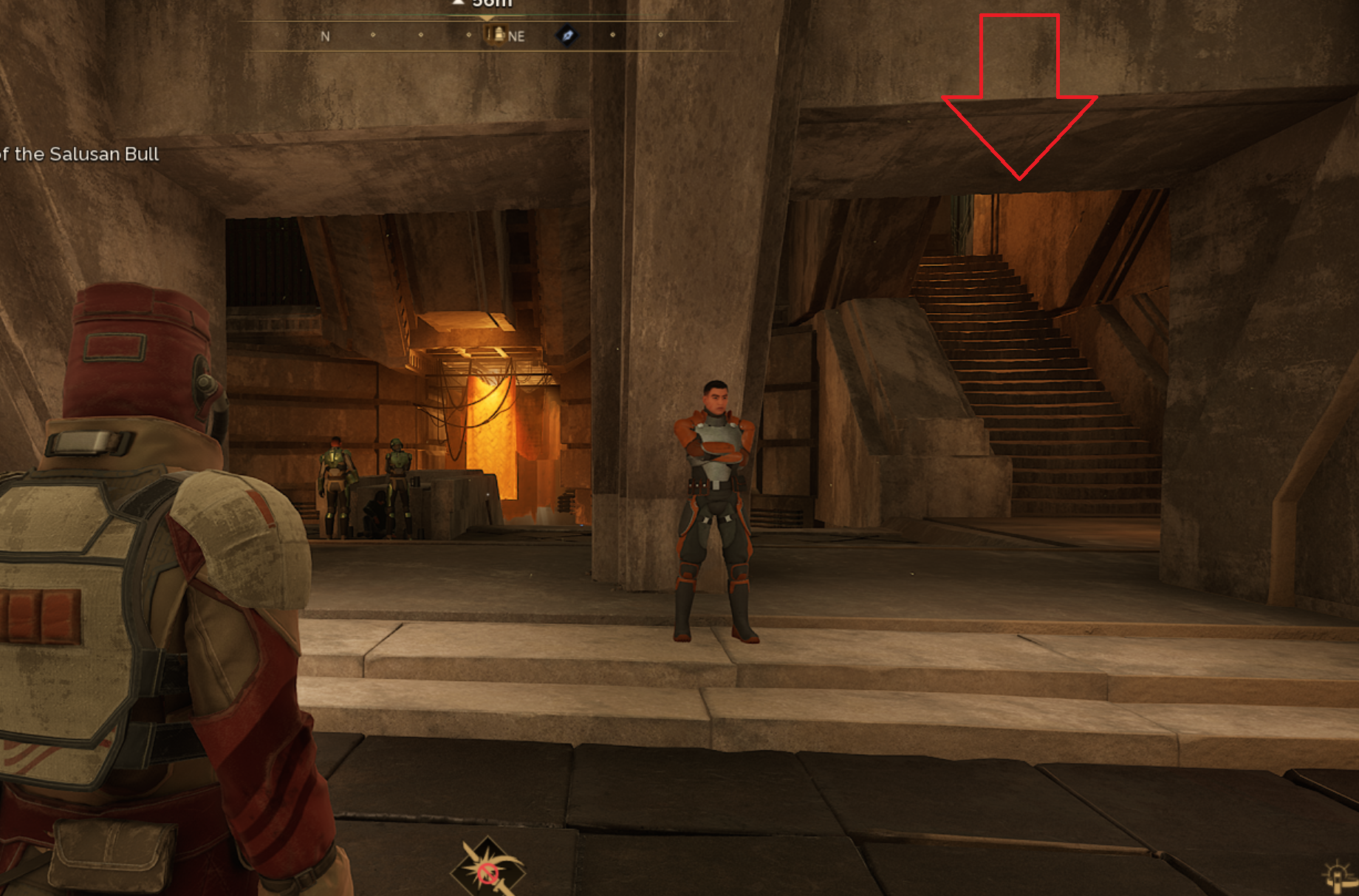 Upon finishing your quest in Western Vermilius Gap you must now fly back to the first meeting spot in South Haga Basin, above Testing Facility No. 2. Derek will ask you to find Cyprian Io at the Salusan Bull, which is the bar located in Arrakeen.