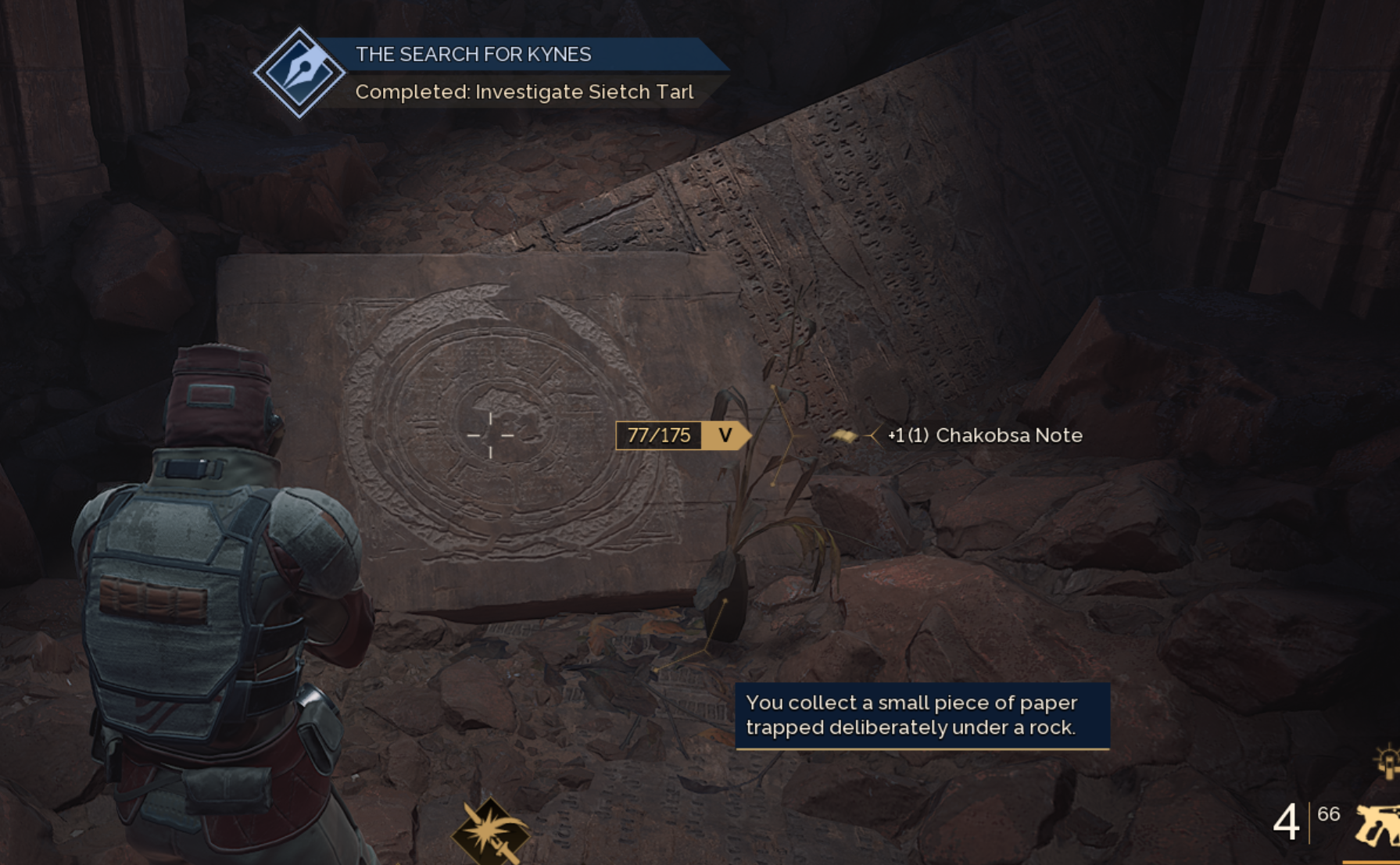 After speaking with Thufir Hawat, we will be directed to the Western Shield wall to the entrance of Sietch Tarl. At the end of this canyon there will be a tablet to interact with and a note recovered. We will return this note to Derek who is at Imperial Testing Station No. 2.