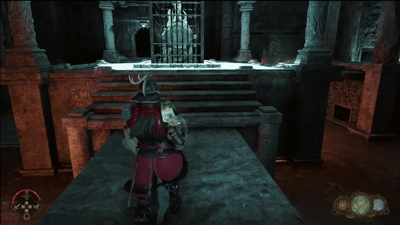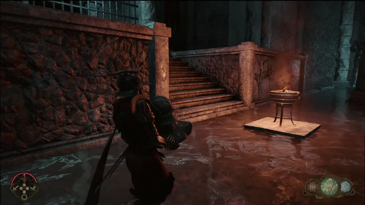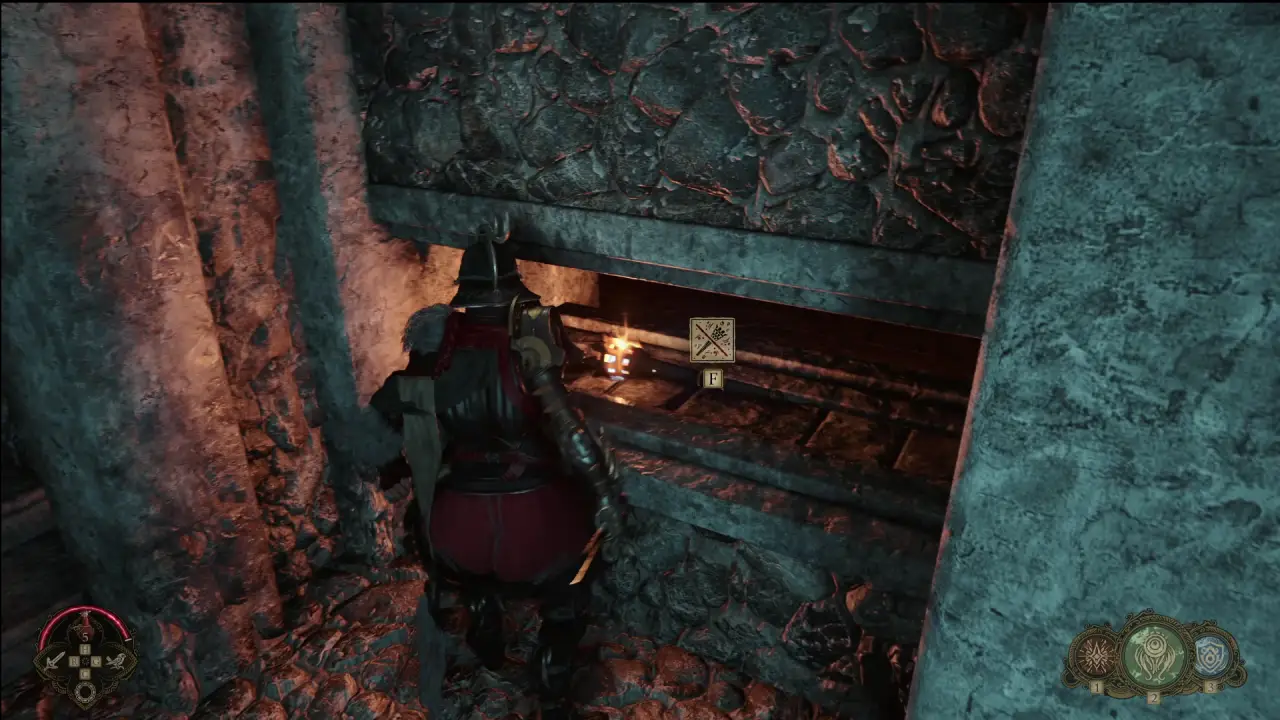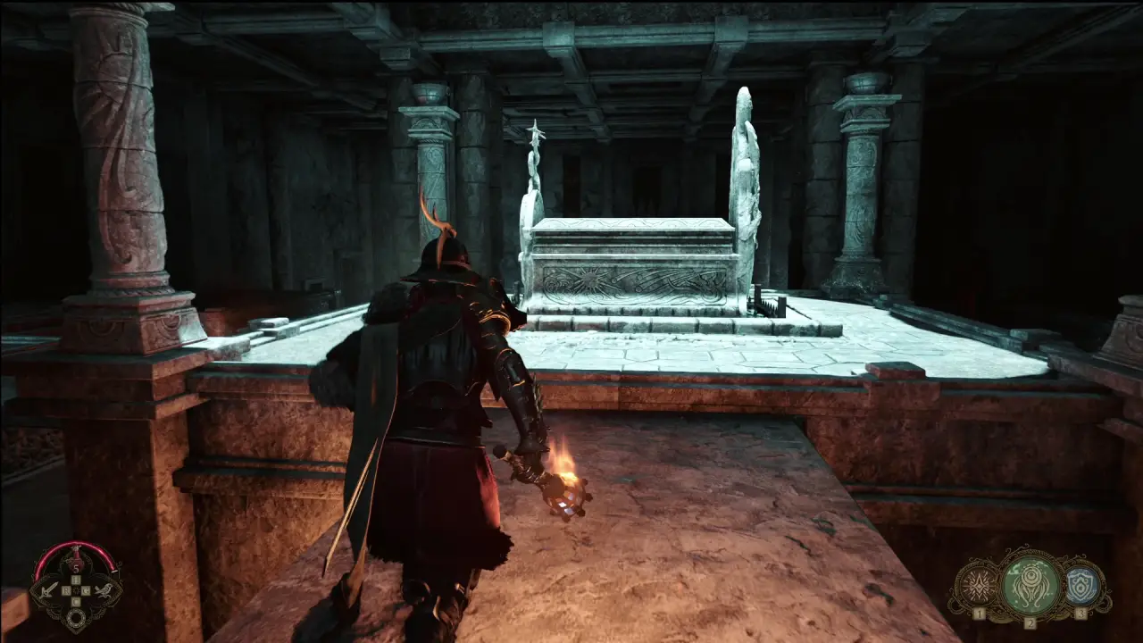 The graveyards contain a large stone sarcophagus that you can interact with to open (if you have a Crypt Key). Jump into the sarcophagus after opening it, and you will fall into the Crypt below. You’ll take a small amount of falling damage, unless you break your fall by performing an attack on your way down (I’m not sure if this is a bug, but you can currently prevent all falling damage in Soulframe by performing an attack just before you land).