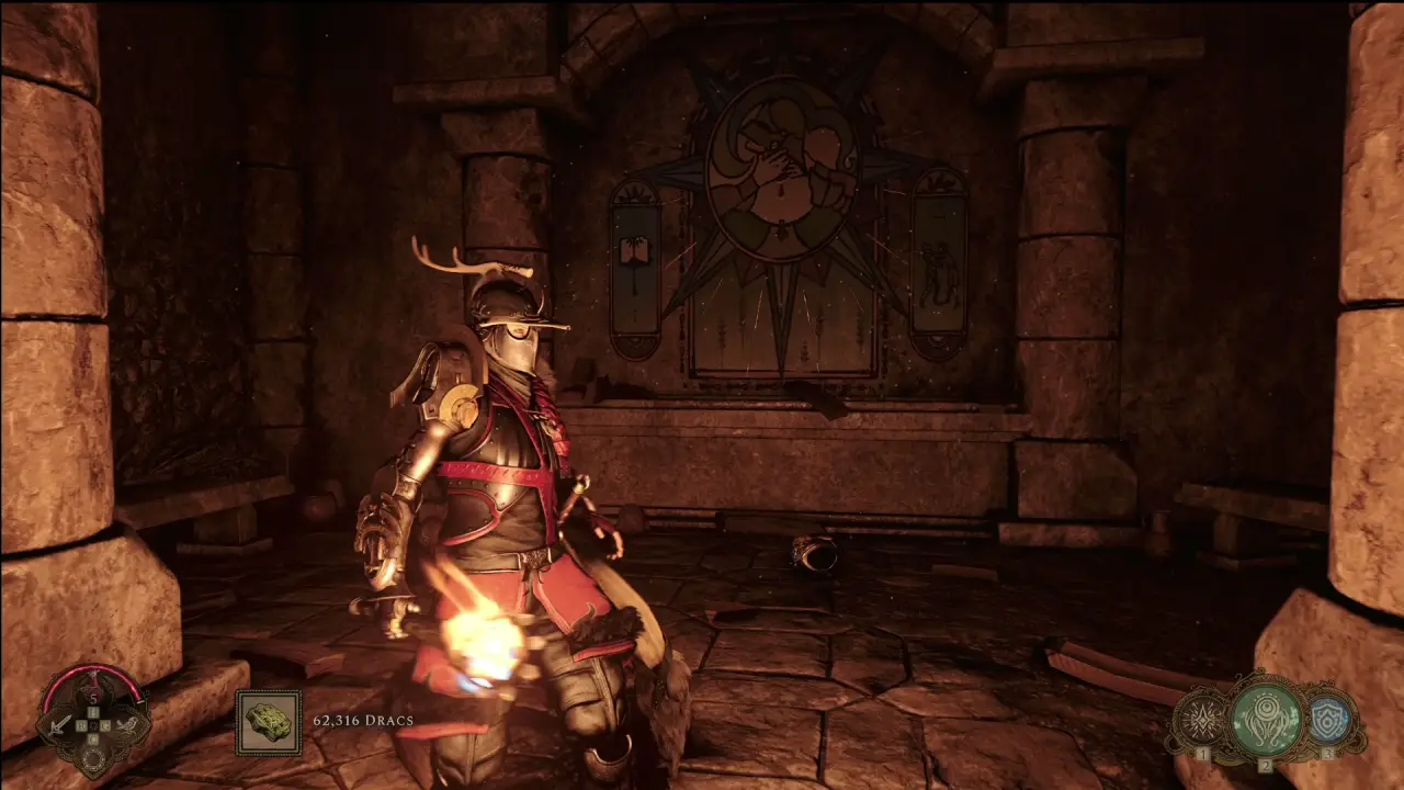 A special mention should be made for the final boss of the Crypt, the Circade. This is a ghostly knight who can surprise you by gliding and striking quickly. Sometimes he will place a magical DoT on you, which hurts quite a lot. When this happens, play it safe for a few seconds and heal up. As long as you go in prepared, the boss isn’t too difficult. The Circade is also at the centre of a rather complex hidden puzzle in the Crypt, something that many players miss completely because it is only hinted at by a note that drops when you defeat the Circade. We’ll explain that more below.