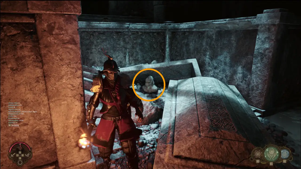- Use Spirit Vision – The Crypt contains some secrets that can only be identified with Spirit Vision (hold E on PC). It will also highlight loot, including the sarcophagi that can be looted. There is no cost for using Spirit Vision, so I recommend holding the button down whenever you are exploring, to ensure you don’t miss anything.