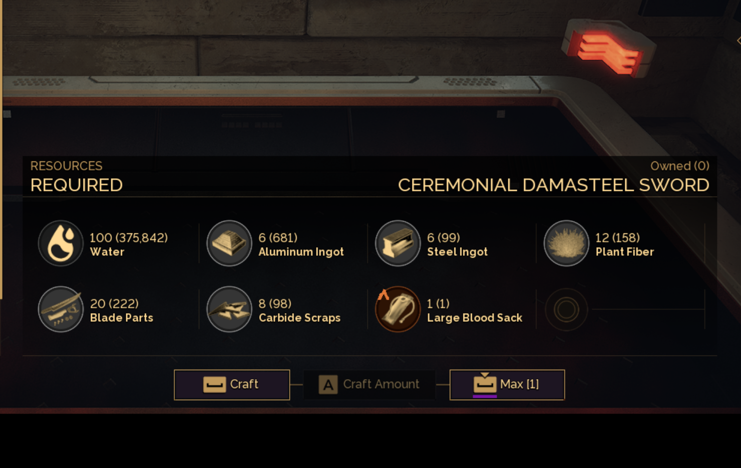 It doesn’t require anything higher than Aluminum Ingots to create. The Large Blood Sack doesn’t require blood either. Once you are able to craft this, return to Harko Village and present it to Seron Varlin.