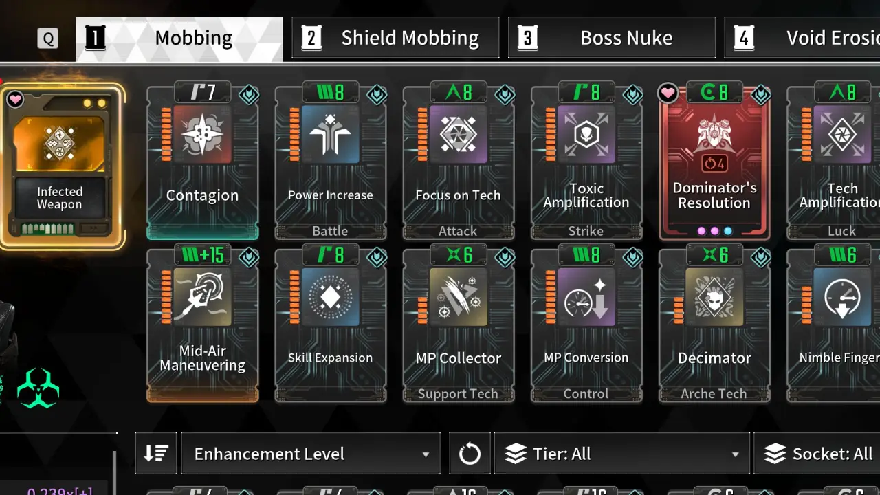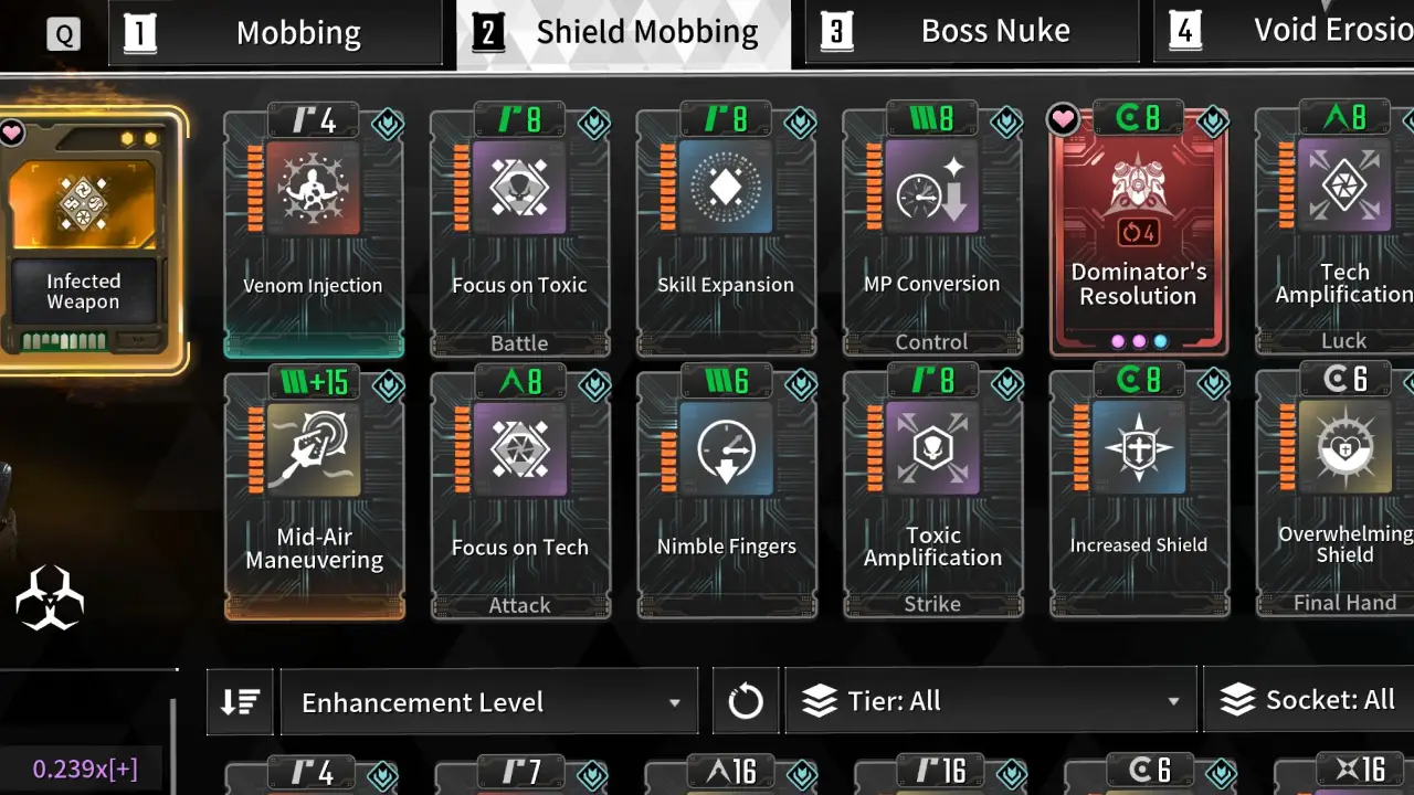 This Freyna Mobbing Build with Venom Injection deals massive damage both for AOE and ST at the cost of sustain management. The Venom Injection transcendent module gives us a huge boost to damage but it constantly drains MP. Additionally, this setup has HP reduced to 1 but shield size increased. This is because the Venom Injection transcendent mod deals more than at low HP.